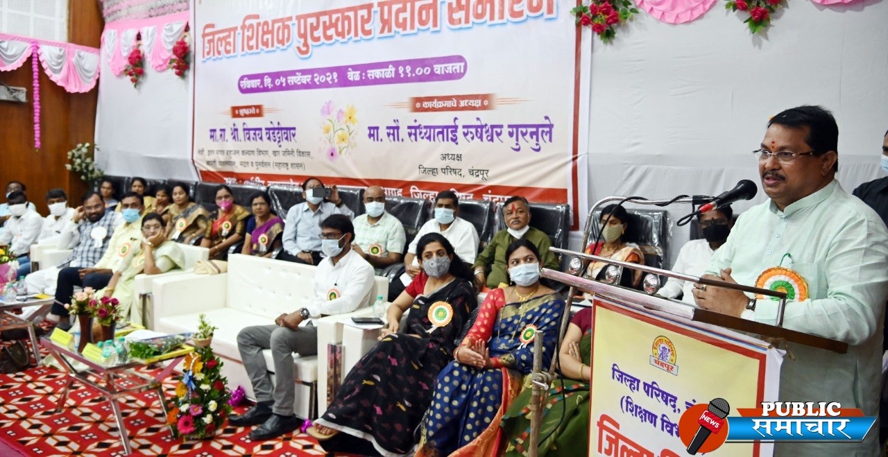शिक्षक दिनानिमित्त उत्कृष्ट कार्य करणाऱ्या शिक्षकांना चंद्रपूर जिल्हा शिक्षक पुरस्कार प्रदान करण्यात आला. यावेळी पालकमंत्री विजय वडेट्टीवार यांनी जिल्ह्यातील शिक्षकांसोबत संवाद साधला. कोरोना संकटात आव्हानात्मक परिस्थितीत शिक्षकांनी आपली जबाबदारी पार पाडली. यासाठी सर्व शिक्षकांचे कौतुक केले. शिक्षकांमुळे डॉक्टर, शास्त्रज्ञ, इंजिनियर, लेखक, शिक्षक आणि अनेक क्षेत्रांमध्ये प्रगती करून देशाचे नाव उंचवणारी सामर्थ्यवान पिढी तयार होते. आपले विचार, मत आणि व्यक्तिमत्त्व घडवण्यामागे शिक्षकांचा मोठा वाटा असतो, असे पालकमंत्री विजय वडेट्टीवार म्हणाले.