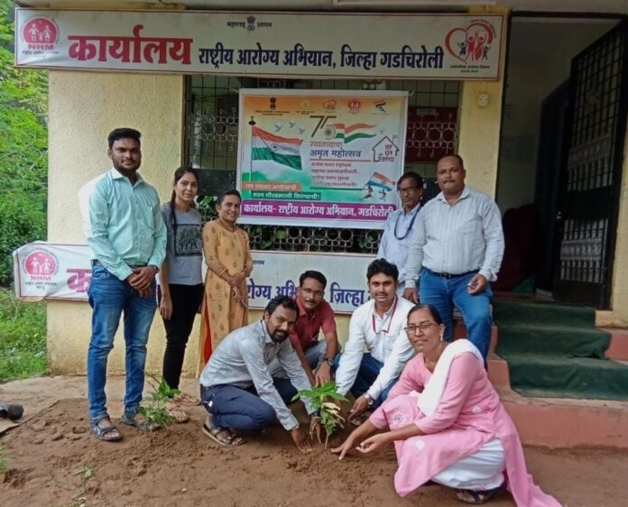 गडचिरोली, दि.13: स्वातंत्रयाच्या अमृत महोत्सव निमित्तने राष्ट्रीय आरोग्य अभियान आरोग्य विभाग गडचिरोली येथे वृक्षरोपन कार्यक्रमाचे आयोजन करुन कार्यालयाच्या परीसरात झाडे लावण्यात आले. कार्यक्रमामध्ये जिल्हा कार्यक्रम व्यवस्थापक डॉ. राहूल थिगडे तसेच आरोग्यवर्धीनी कन्सलटन डॉ.दिक्षांत मेश्राम,जिल्हा सिकलसेल समन्वयक रचना फुलझेले, जिल्हा समुह संघटक धीरज सेलोटे, कार्यक्रम सहायक जीतेद्र कोटगले,गुणवत्ता आश्वासन कार्यक्रम साहाय्यक श्रीमती वैशाली चौधरी, लेखापाल प्रिती एरेकर, घनश्याम मारबते, प्रवीण घूटके, औषधी निर्माता अधिकारी,अनंता मडावी, व कपील बारसिंगे, व इतर सर्व कर्मचारी वर्ग उपस्थित होते.