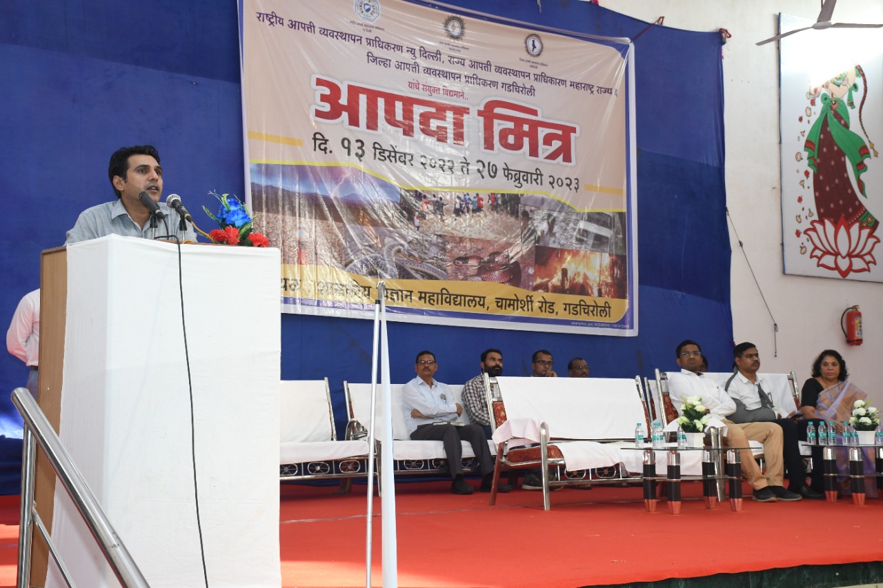 सदर प्रशिक्षण कार्यक्रम गडचिरोली जिल्ह्यात राबविण्यात येत आहे. या करीता राष्ट्रीय आपत्ती व्यवस्थापन प्राधिकरण नवी दिल्ली, राज्य आपत्ती व्यवस्थापन प्राधिकरण, महाराष्ट राज्य तसेच जिल्हा आपत्ती व्यवस्थापन प्राधिकरण जिल्हाधिकारी कार्यालय गडचिरोली यांचे संयुक्त विद्यमाने गडचिरोली जिल्ह्यात आपदा मित्र प्रशिक्षण कार्यक्रम जिल्हा स्तरावर राबविण्यात येत आहे. शासकीय विज्ञान महाविद्यालय, चामोर्शी रोड गडचिरोली येथे दि.13 ते 24 डिसेंबर या कालावधीमध्ये प्रथम बँच चे सुरुवात आज झाली.
