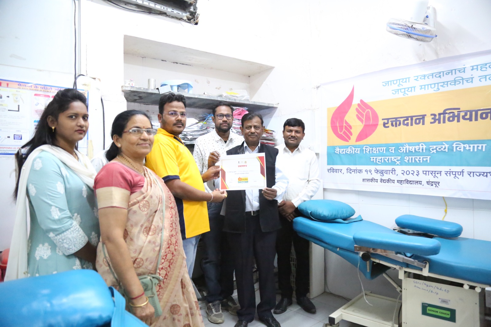 चंद्रपूर, दि. 19: छत्रपती शिवाजी महाराज यांच्या जयंतीनिमित्त शासकीय वैद्यकीय महाविद्यालय व रुग्णालयातील विकृतीशास्त्र व नर्सिंग विभाग यांच्या संयुक्त विद्यमाने रक्तदान व श्रमदान शिबिर घेण्यात आले.