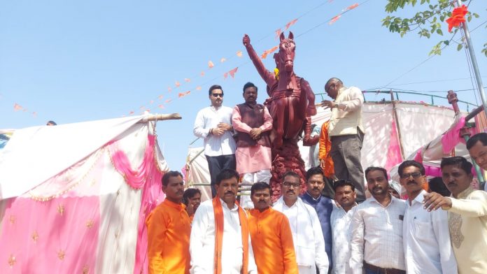 गावातील प्रवेशद्वारावर मान्यवरांचे पुष्पहाराने स्वागत करत ढोल, ताशाच्या गजरात गावातून फेरी काढून छत्रपती संभाजी महाराज यांच्या पुतळ्याचे सोहळा जय शिवराय व स्वराज्यरक्षक धर्मवीर छत्रपती संभाजी महाराज यांच्या जय घोषाने पार पाडून कार्यक्रमाचे शिवध्वज फडकवत दीप प्रज्वलन करून कार्यक्रमाची सुरुवात केली.