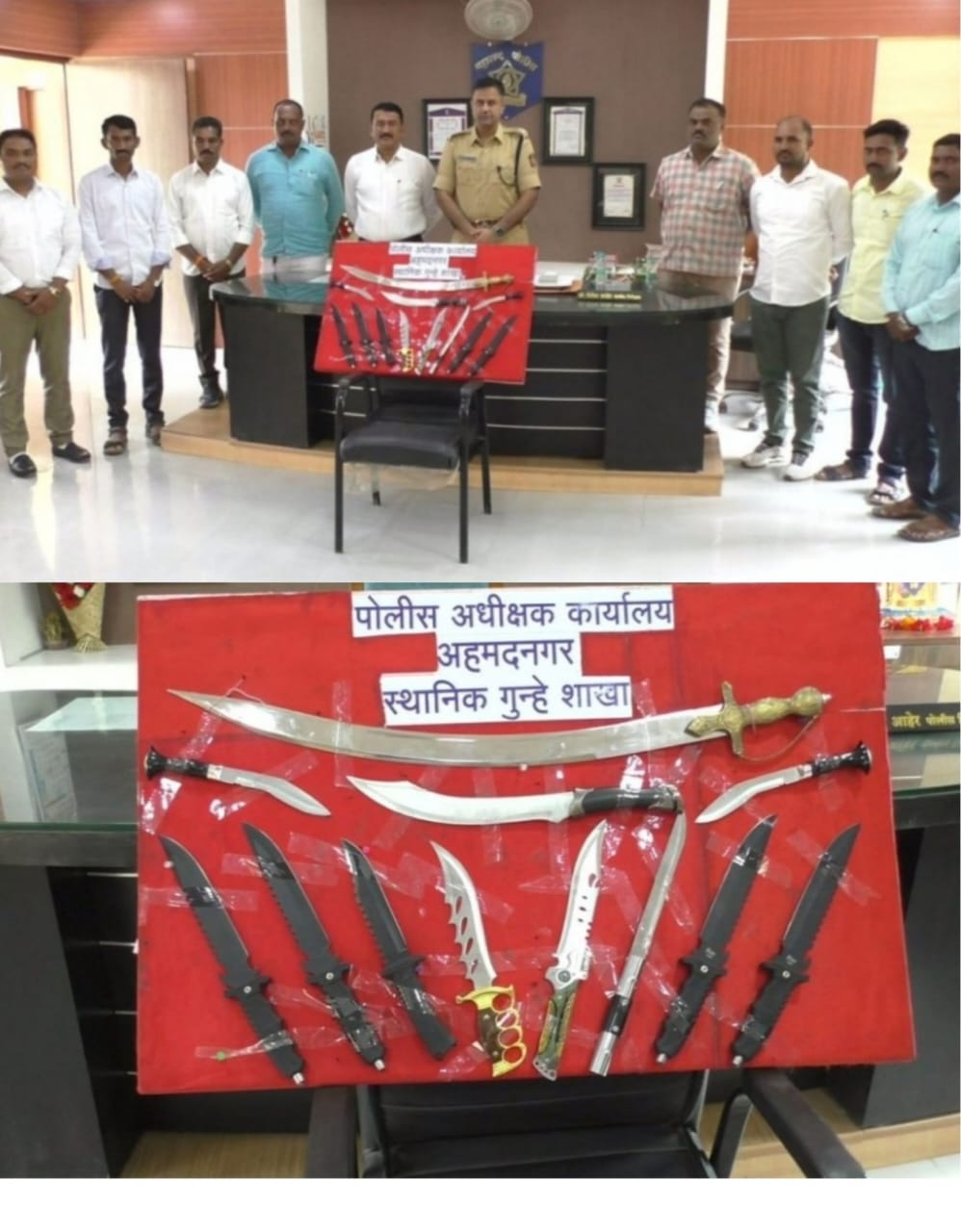 धारदार तलवारीसह अन्य हत्यारांचा साठा जप्त अहमदनगर शहर परिसरातील टोळीवर एल.सी.बी. ची कारवाई