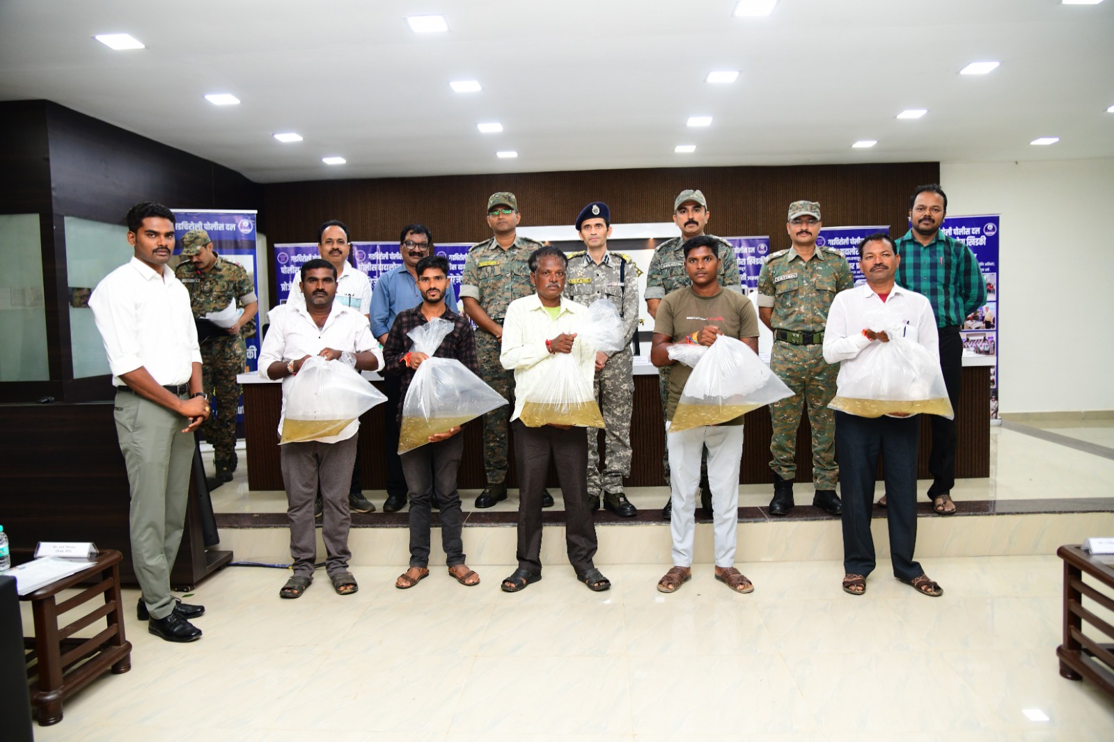सदर कार्यक्रमास मा. पोलीस उपमहानिरीक्षक गडचिरोली परिक्षेत्र कॅम्प नागपुर श्री. संदिप पाटील सा., मा. पोलीस अधीक्षक श्री. नीलोत्पल सा., मा. अपर पोलीस अधीक्षक (अभियान) श्री. अनुज तारे सा., मा. अपर पोलीस अधीक्षक, अहेरी श्री. यतिश देशमुख सा., मा. श्री. प्रफुल पोरेड्डीवार प्रकल्प अधिकारी एकात्मिक आदिवासी विकास प्रकल्प गडचिरोली, श्री. अमोल सोनोने, मत्सव्यवसाय विकास अधिकारी गडचिरोली, श्री. सुधाकर गौरकर सहायक प्रकल्प अधिकारी गडचिरोली, हे उपस्थित होते.