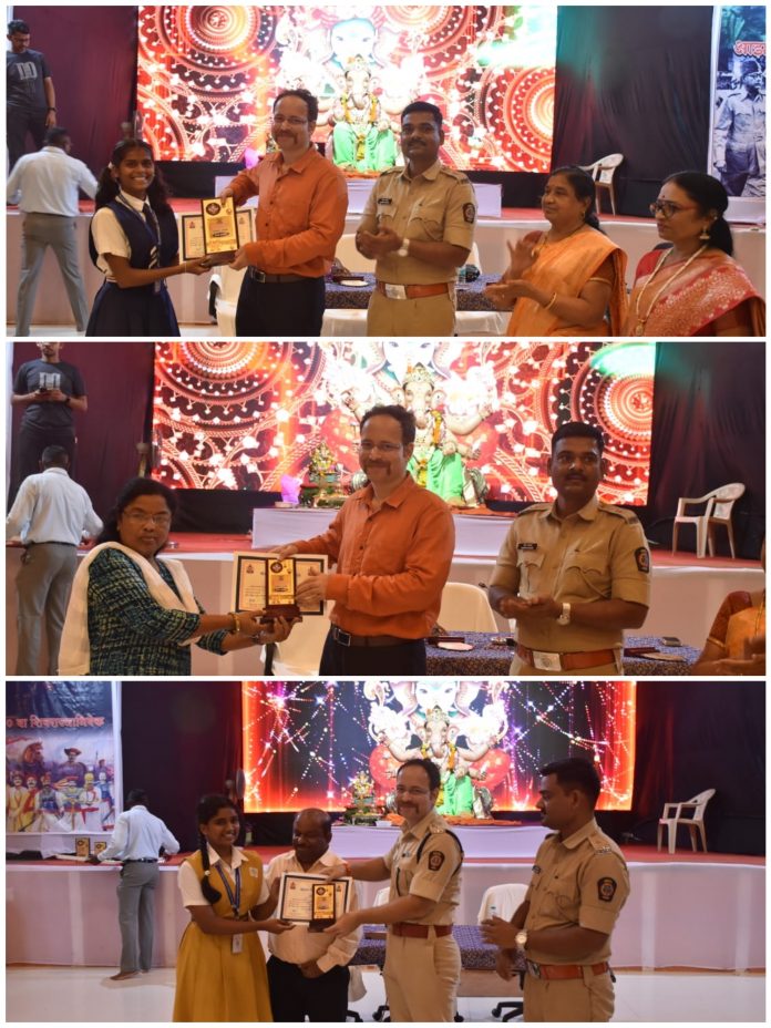 भंडारा :- आज दिनांक २०/०९/२०२३ रोजी आदर्श गणेश उत्सव मंडळ पोलीस वसाहत भंडारा यांच्या वतीने बहुउद्देशीय हॉल पोलीस मुख्यालय भंडारा येथे विविध स्पर्धेचे आयोजन केले आहे. त्यामध्ये युथ कॉन्फरन्स स्पर्धेचे आयोजन केले आहे. त्यात २५ विद्यार्थी भाग घेतलेला होता. तसेच सायकांळी कविता स्पर्धेचे आयोजन केले होते. तसेच सायंकाळी कविता स्पर्धेचे आयोजन केले होत. यावेळी विजेत्यांना प्रथम, द्वितीय, तृतीय क्रमांकाचे बक्षीस मा. पोलीस अधीक्षक भंडारा श्री लोहित मतानी, अपर पोलीस अधीक्षक श्री. ईश्वर कातकडे यांच्या हस्ते बक्षीस वितरण करण्यात आले. स्पर्धेत सहभागी सर्व स्पर्धकांचे प्रमाणपत्र देऊन अभिनंदन करण्यात आले आहे.