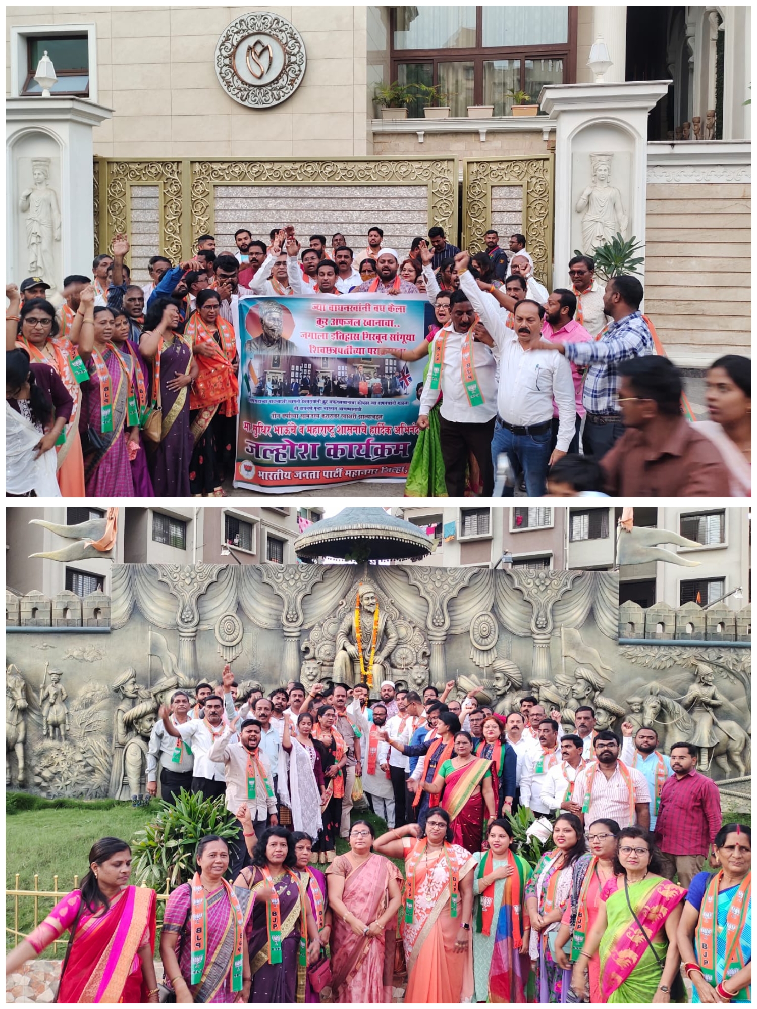जिल्ह्याचे आदरणीय पालकमंत्री महाराष्ट्राचे झुंजार नेतृत्व आमचे लाडके चंद्रपूरचे सुपुत्र आदरणीय सुधीरभाऊ मुनगंटीवारजी यांच्या नेतृत्वात महाराष्ट्र सरकारच्या वतीने ती वाघनखे भारतात आणण्याचे जे कार्य आहे आणि जो सामंजस्य करार आहे तो ब्रिटन येथील लंडनमध्ये झाला आणि त्यामुळे आज भारतीय जनता पार्टी चंद्रपूर महानगर च्या वतीने संपूर्ण पदाधिकारी कार्यकर्त्यांसहित जल्लोष करीत आहोत.