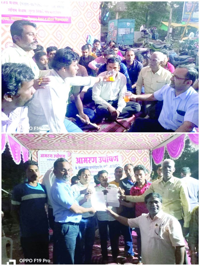 तिसऱ्या दिवशी कामगारांच्या आंदोलनात अजय मेश्राम व मॅनेजर यांच्या हस्ते उपोषणाची सांगता