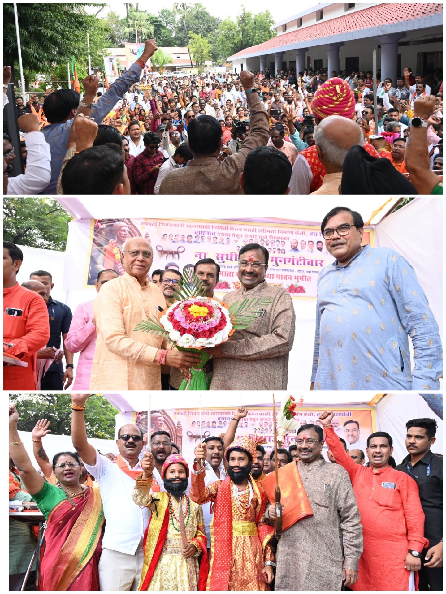 ‘मी भाजपचे काम करत येथवर पोहोचलो. पक्षाने जे दिले ते आनंदाने स्वीकारले. प्रदेशाध्यक्ष झालो, मंत्री झालो. पण पदासाठी नेत्यांना कधीच भेटलो नाही. पक्षाने मला सांस्कृतिक कार्य विभाग दिल्याचा खूप आनंद आहे. त्यामुळे आज अनेक निर्णय करता येत आहे. मात्र एवढ्यावर काम थांबलेले नाही. अजून महाराष्ट्रात जगातील सर्वांत सुंदर असे संग्रहालय करण्याचा विचार आहे. छत्रपती शिवाजी महाराजांची जगदंब तलवारही भारतात आणायची आहे. अभी तो सिर्फ झाकी है… अभी पुरा काम बाकी है,’ असा निर्धार ना. श्री. मुनगंटीवार यांनी व्यक्त केला.