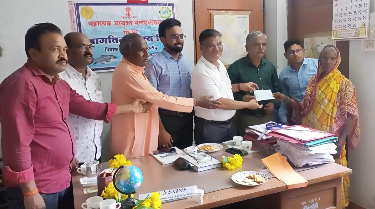 या प्रसंगी मासेमार संकट निवारण निधी अंतर्गत मृत मच्छीमारांच्या वारसांना अर्थसहाय्य म्हणून मच्छीमार विमा योजनेचे धनादेश श्रीमती मोताई तिमा वलथरे व श्रीमती शांता जयदेव मेश्राम यांना एक – एक लक्ष रूपयाचे धनादेश पाहुण्यांच्या हस्ते वितरीत करण्यात आले.