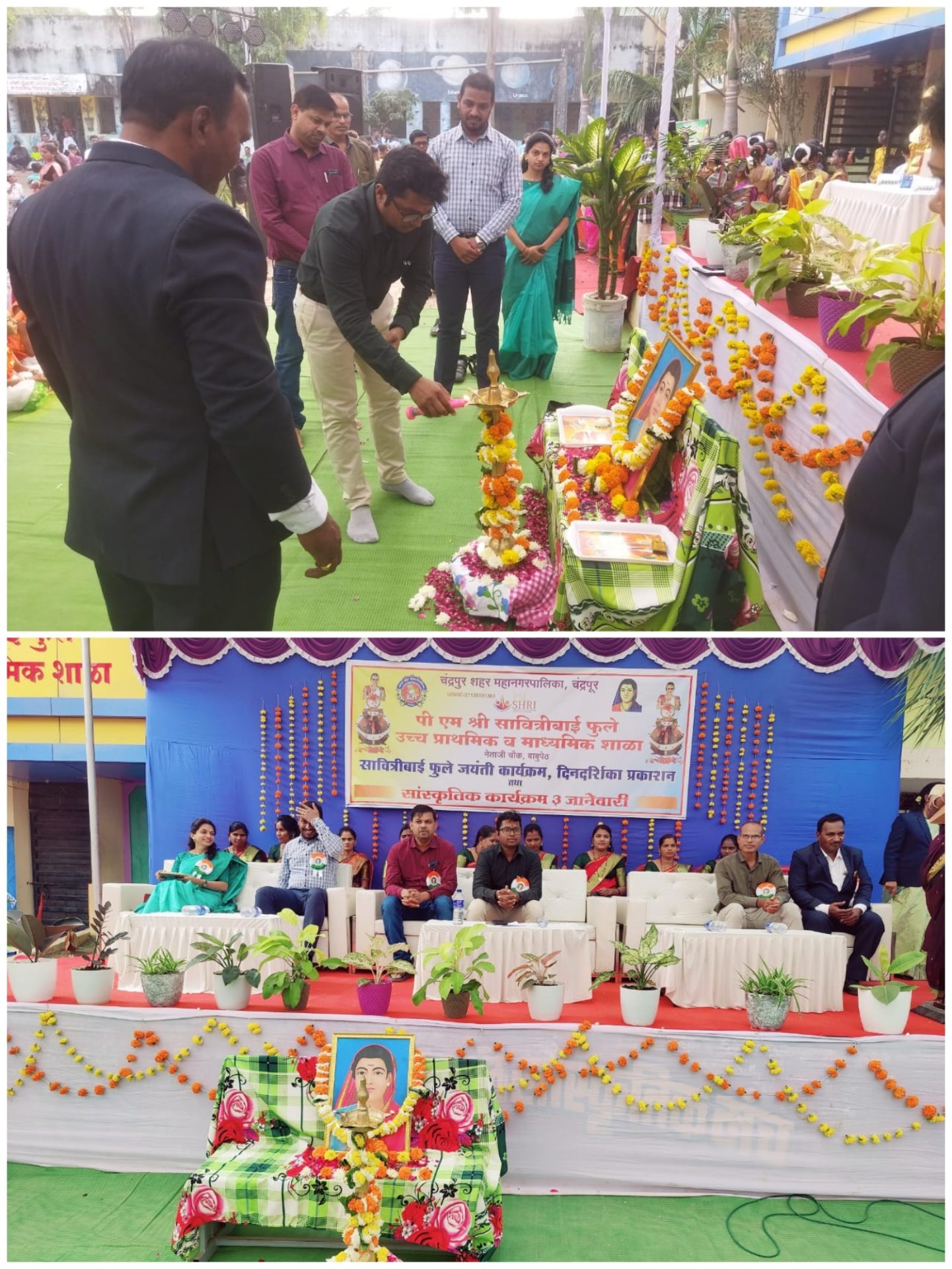 चंद्रपूर ४ जानेवारी – चंद्रपूर महानगरपालिका पीएम श्री सावित्रीबाई फुले सेमी इंग्रजी शाळा येथे ३ जानेवारी रोजी क्रांतीज्योती सावित्रीबाई फुले जयंती साजरी करण्यात आली. क्रांतीज्योती सावित्रीबाई फुले जयंती निमित्ताने शाळेचे वार्षिक स्नेहसंमेलन व शाळा दिनदर्शिका प्रकाशन सोहळा उत्साहात पार पडला.