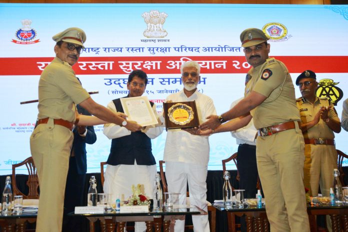 रस्ते अपघात व मृत्यू कमी करण्यात चंद्रपूर जिल्हा राज्यात द्वितीय Ø पोलीस अधीक्षक व प्रादेशिक परिवहन अधिकारी मुंबई येथे सन्मानित