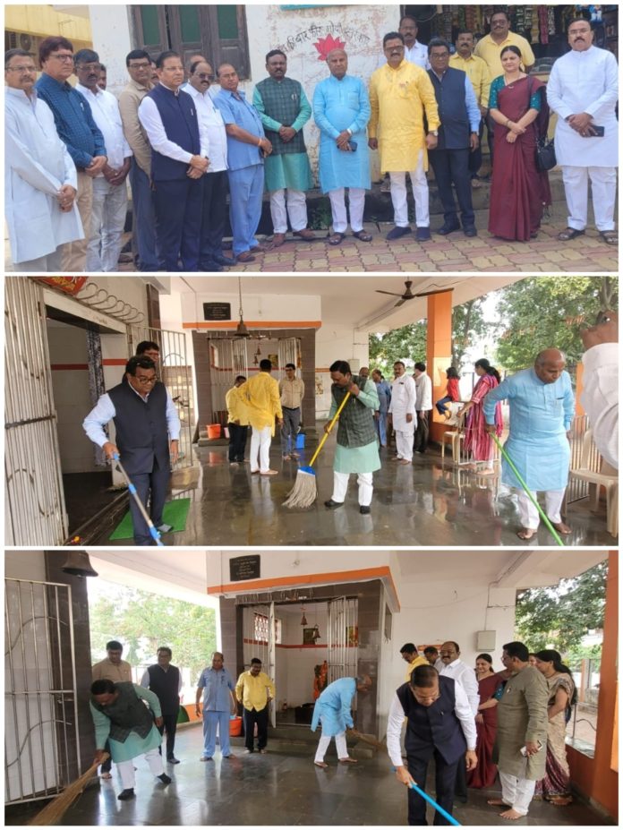 हनुमान मंदिरात स्वच्छता अभियान खासदारांचा सहभाग