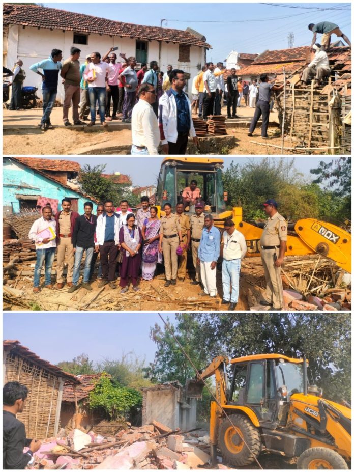 सिंदेवाही – सिंदेवाही तालुक्यातील मौजा वानेरी येथील शासकीय भूमापन क्रमांक -११६ माराजी ०.७०हे.आर . बोडीच्या पोटातील जागेत गेल्या पाच सहा वर्षापासून गावातील सात ग्रामस्थांनी अतिक्रमण करून शासकीय जागा बळकावण्याचा प्रयत्न केला याबाबत बॉडीच्या पाण्याचे लाभधारक श्री विठ्ठल डोनुजी कामडी व इतर 12 शेतकऱ्यांनी प्रशासनाकडे सातत्याने पाठपुरावा केला व आज दि. 25/01/2024 रोजी अनधिकृत बांधकाम हटवून शासनाने शासनाची जागा ताब्यात घेतली त्यावेळेस प्रशासना तर्फेप्रशासनातर्फे सर्वच जबाबदार विभागाच्या अधिकारी कर्मचाऱ्यांनी आपापले कायदेशीर जबाबदारी पार पाडली व शेतकऱ्यांना होणाऱ्या त्रासातून कायमचे मुक्त केले. ही कारवाई जलसंधारण विभागाचे उपविभागीय अभियंता भुसारी, तोगट्टीवार , म्हसेकर , नायब तहसीलदार तुमराम , पोलीस विभागाचे पीएसआय महले व इतर सहकारी, मंडळ अधिकारी तोडसाम तलाठी ग्रामसेवक ग्रामपंचायतचे सरपंच व हक्कदार शेतकरी उपस्थित होते.
