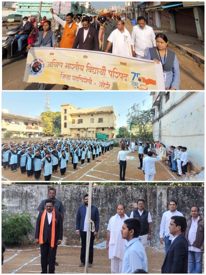 प्रजासत्ताक दिनानिमित्त अखिल भारतीय विद्यार्थी परिषदेच्या वतीने विद्यार्थ्यांची रॅली काढण्यात आली. या रॅलीत खा.अशोक नेते यांनी सहभागी होऊन विद्यार्थ्यांचा उत्साह वाढला. यावेळी लोकसभा विस्तारक बाबुराव कोहळे, जिल्हा महामंत्री प्रकाश गेडाम, जिल्हा उपाध्यक्ष दामोधर अरिगेला तसेच मोठ्या संख्येने अभाविपचे पदाधिकारी आणि विद्यार्थी उपस्थित होते.