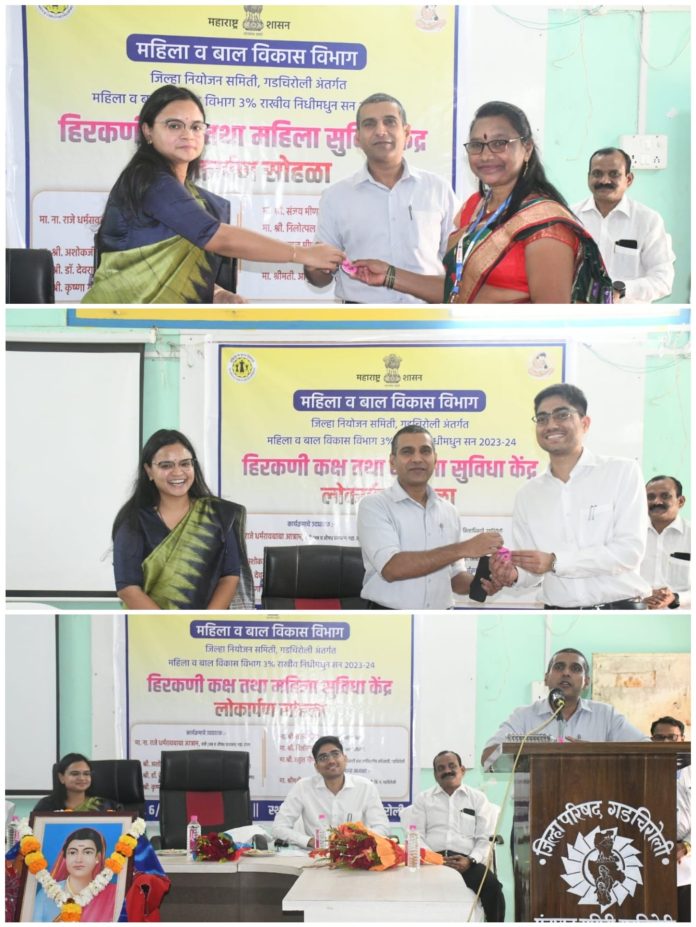 सदरची आवश्यकता विचारात घेवून जिल्हा महिला व बाल विकास अधिकारी कार्यालयाने जिल्हयातील तालुकस्तरावरील पंचायत समितीच्या कार्यालयाच्या परिसरात हिरकणी कक्ष बसविण्यासाठी जिल्हा नियोजन समिती गडचिरोली अंतर्गत महिला व बाल विकास विभाग ३% टक्के राखीव निधीमधुन सन २०२३-२४ करिता गडचिरोली जिल्हयातील १२ पंचायत समीत्या व ६ उपविभागीय कार्यालयाच्या परिसरात शासकीय कामाने येणाऱ्या स्तनदा माता, मुली, महिला, वृदध महिला यांना आवश्यक त्या सोई सुविधा उपलब्ध करुन देण्याच्या अनुषंगाने जिल्हयात एकुण १८ ठिकाणी जिल्हा नियोजन समीती मधुन 3 टक्के निधीमधून मंजूरी घेवून हिरकणी कक्ष तथा महिला सुविधा केंद्राची उभारणी करण्यात आली आहे. महिलांकरिता आवश्यक सर्वकष सुविधा उपलब्ध करुण देण्यात आलेले आहे त्याअनुषंगाने सर्वप्रथम पंचायत समीती व उपविभागीय कार्यालय गडचिरोली परिसरात हिरकणी कक्ष तथा महिला सुविधा केंद्राचे लोकार्पण तथा उदघाटन सोहळा दिनांक ६ फेब्रुवारी २०२४ रोज मंगळवार ला जिल्हाधिकारी, गडचिरोली, संजय मीणा यांच्या शुभ हस्ते करण्यात आले आहे. यावेळी कार्यक्रमाला अध्यक्ष म्हणून मुख्य कार्यकारी अधिकारी जि. प. गडचिरोली, श्रीमती आयुषी सिंग प्रमुख अतिथि म्हणून सहायक जिल्हाधिकारी तथा उपविभागीय अधिकारी गडचिरोली, राहुल मीणा, जिल्हा महिला व बाल विकास अधिकारी गडचिरोली, प्रकाश भांदककर, गट विकास अधिकारी पंचायत समीती गडचिरोली, सुरेद्र गोंगले, बाल विकास प्रकल्प अधिकारी गडचिरोली, सिंधु गाडगे, हेमलता परसा गट शिक्षणधिकारी पंचायत समीती गडचिरोली, जिल्हा परिविक्षा अधिकारी विनोद पाटील, वरिष्ठ संरक्षण अधिकारी रुपाली काळे, तसेच अधिकारी व कर्मचारी उपस्थित होते. सामाजिक कार्यकर्ते जयंत जथाडे, क्षेत्र कार्यकर्ता रविंद्र बंडावार, निलेश देशमुख, लोमेश गेडाम व महिला व बाल कल्याण विभाग येथील अधिकारी कर्मचारी यांचे सहकार्य लाभले. अशा प्रकारचे सर्व सुविधायुक्त अदयावत असणारा हिरकणी कक्ष तथा महिला सुविधा केंद्र जिल्हयातील पहिले केंद्र असून यामध्ये महिलांकरिता अदयावत स्वच्छता गृह, पिण्याच्या पाण्याकरिता वॉटर प्युरिफायर, महिलांकरिता सॅनेटरी नॅपकीन ( वेंडर मशीन), लहान बालकांना खेळण्याकरिता खेळणी, एक बेड, बालकांना सानपान करण्याकरिता फींडीग चेअर, लहान बालकांना बसण्याकरिता चेअर, महिलांच्या सुरक्षाच्या दुष्टीकोनातुन सि.सि.टिकी कॅमेरा बाहेरच्या बाजुला बसवण्यात आले आहे इत्यादी सुविधा केंद्रात उपलब्ध करुन देण्यात आले आहे.