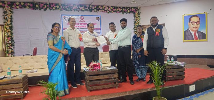 भंडारा,दि.9 :संत रोहीदास चर्मोद्योग व चर्मकार विकास महामंडळ मर्या. जिल्हा कार्यालयामध्ये “शासन आपल्या दारी“ या संकल्पने अंतर्गत “लिडकॉम आपल्या दारी“ ही कार्यशाळा व्यवस्थापकीय संचालक धम्मज्योती गजभीये यांच्या मार्गदर्शनात डॉ. बाबासाहेब आंबेडकर सामाजिक न्याय भवन सभागृह, सिव्हील लाईन, येथे सुरेश ढगे, विभागीय अधिकारी, लिडकाम, नागपूर यांचे अध्यक्षतेखाली साजरी करण्यात आली.अध्यक्षीय भाषणात सुरेश ढगे, विभागीय अधिकारी यांनी महामंडळाच्या सुवर्ण जयंती वर्षा निमित्त देण्यात येणाऱ्या विविध योजनेमध्ये व्याज दरावरील सुटचा लाभ तसेच एक रक्कमी थकीत कर्ज रक्कम भरणा केल्यास त्यावर 50 टक्के व्याजामध्ये सुट मिळेल असे उपस्थितांना प्रतिपादन केले. सोबतच महाराष्ट्र उद्योजकता विकास केंन्द्राशी महामंडळाच्या झालेल्या करारानुसार चर्मकार समाजासाठी असलेल्य प्रशिक्षण कार्यक्रमाचा लाभ समाजातील लोकांनी घ्यावा असे आवाहन केले.