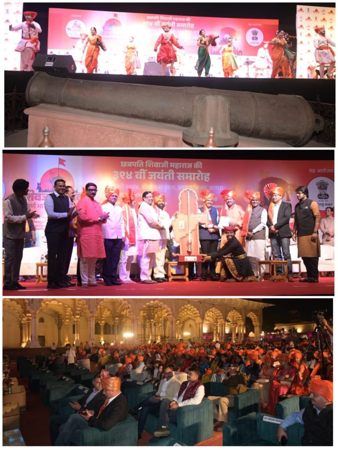 आग्रा येथील किल्ल्यामध्ये ‘छत्रपती शिवाजी महाराज की जय’, ‘हर हर महादेव’चा जयघोष करीत अतिशय दिमाखात शिवजयंती साजरी करण्यात आली. या कार्यक्रमाला मुख्यमंत्री श्री. एकनाथ शिंदे आणि उपमुख्यमंत्री श्री. देवेंद्र फडणवीस यांच्यासह केंद्रीय रेल्वे राज्यमंत्री श्री. रावसाहेब पाटील दानवे, केंद्रीय आरोग्य राज्यमंत्री श्री. एस. पी. बघेल, खासदार, श्रीमंत छत्रपती उदयनराजे भोसले, दिग्दर्शक प्रवीण तरडे, अभिनेते मंगेश देसाई, सांस्कृतिक कार्य विभागाचे प्रधान सचिव विकास खारगे, श्री. विनोद पाटील, श्री. विद्याधर पवार, श्री.आस्तिक पांडे, गायक श्री. नितीन सरकटे आदी मान्यवर उपस्थित होते.