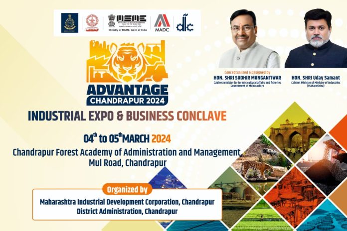 चंद्रपूर,दि.24 : जिल्हा प्रशासन, एम.एस.एम.ई., एमआयडीसी व एमआयडीसी असोसिएशन यांच्या संयुक्त विद्यमाने, दि. 4 व 5 मार्च 2024 रोजी अॅडवांटेज चंद्रपूर “इंडस्ट्रियल एक्सपो अँड बिजनेस कॉन्क्लेव्ह”चे आयोजन वन अकादमी येथे करण्यात येत आहे. जिल्ह्याचे पालकमंत्री सुधीर मुनगंटीवार यांच्या संकल्पनेतून हा नाविन्यपूर्ण उपक्रम जिल्ह्यात राबविण्यात येत आहे.