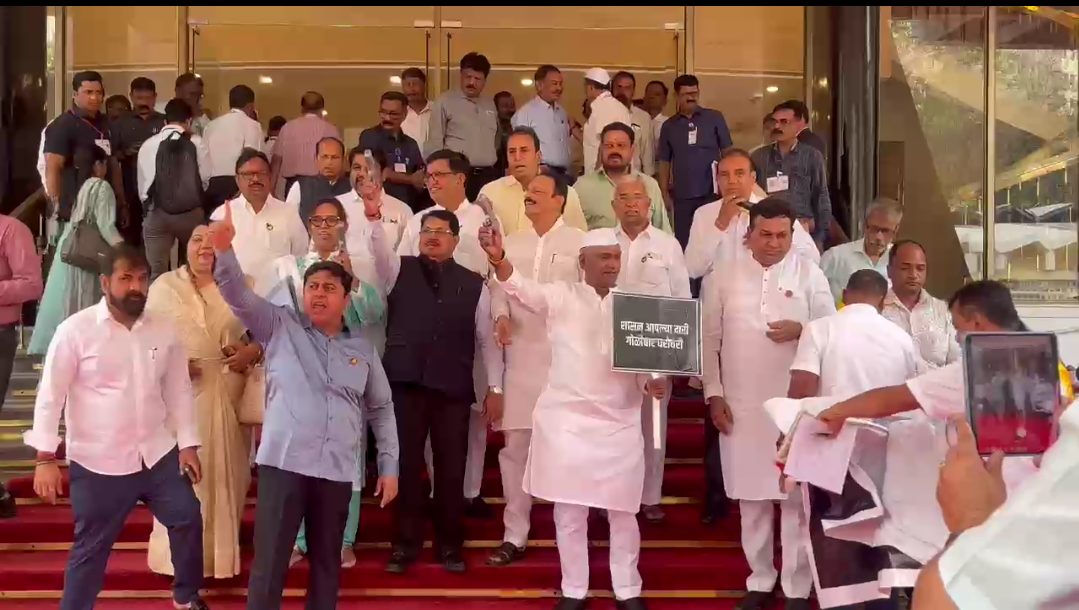 विरोधकांकडून विधीमंडळाच्या पायऱ्यांवर सरकारचा जोरदार निषेध.