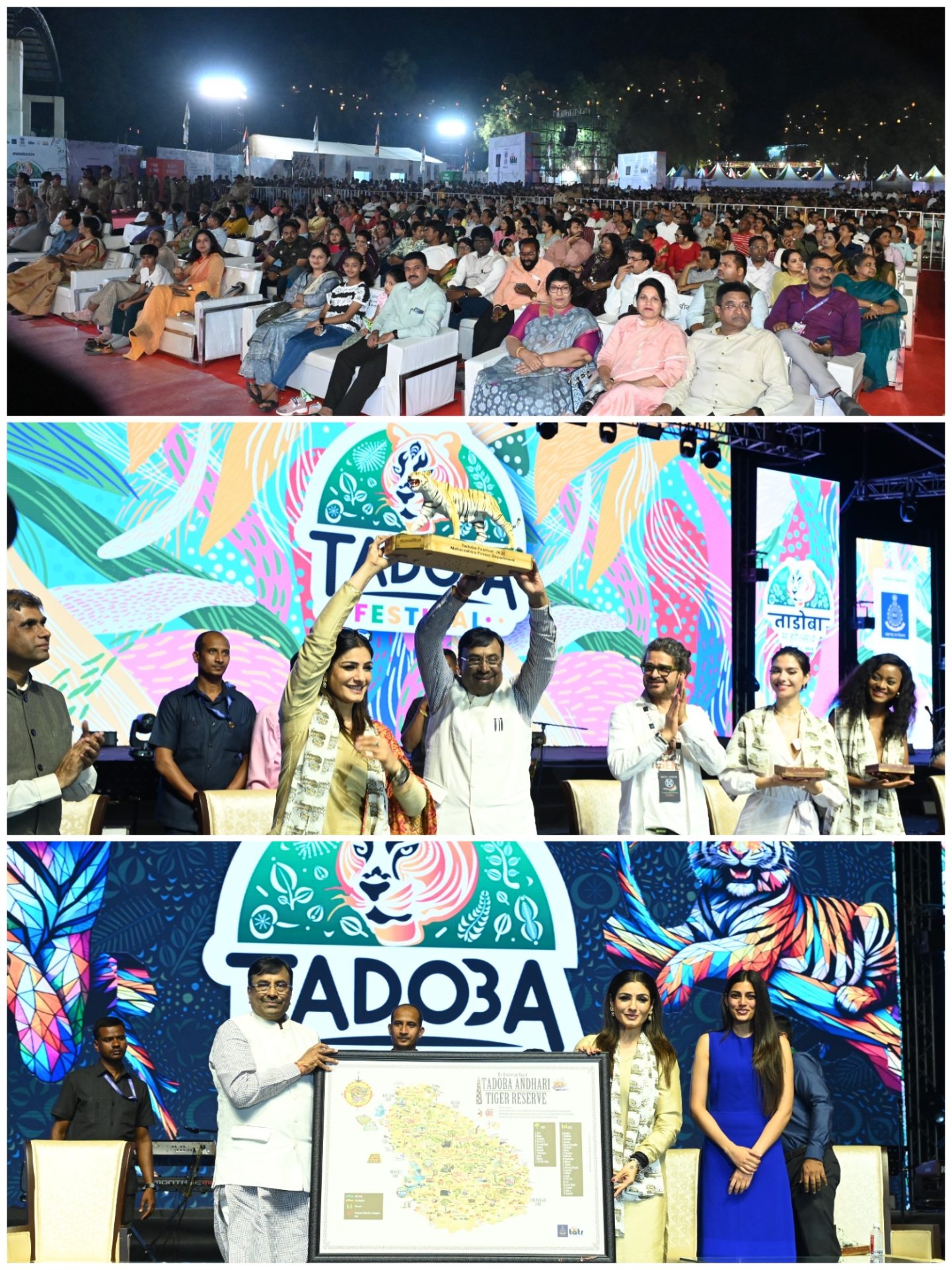 आपल्या भाषणात रविना टंडन यांनी वनसंवर्धनाचं काम करणाऱ्या वन कर्मचाऱ्यांपासून तर जिप्सी चालक, गाईड आणि गावकरी सर्वांना श्रेय बहाल करत, असंच काम करत राहण्याचं आवाहन केलं. एखाद्या वाघिणीने पिलाला जन्म दिल्याची बातमी जशी आनंद देऊन जाते, तसेच एखाद्या वाघाच्या मृत्यूची घटना तेवढीच वेदनादायी असते. पण एक मात्र खरं आहे की ताडोबाच्या जंगलाची जादू जगात कुठेही बघायला मिळत नाही. म्हणूनच या टायगर कॅपिटलची महती मी जगाला सांगणार आहे. जगाच्या पाठीवर जिथे जाईल तिथे ताडोबाचा झेंडा फडकावणार असल्याची ग्वाही देखील रविना टंडन यांनी यावेळी दिली.