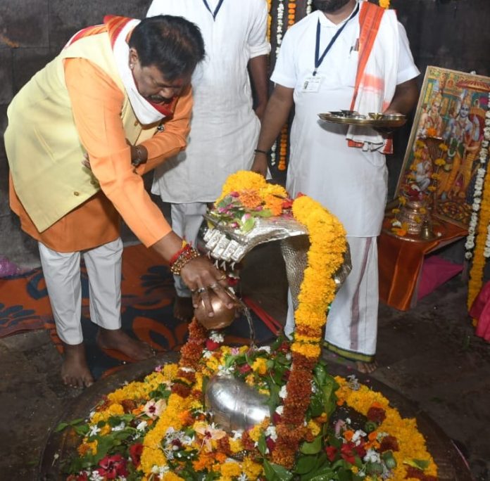 गडचिरोली, दि.08: अन्न व औषध प्रशासन मंत्री धर्मरावबाबा आत्राम यांनी आज चार्मोशी तालुक्यातील श्रीक्षेत्र मार्कंडेश्वर मंदिरात भेट देऊन श्री महादेवाचे दर्शन घेतले यावेळी त्यांनी नागरिकांच्या सुख समृद्धीसाठी प्रार्थना केली.