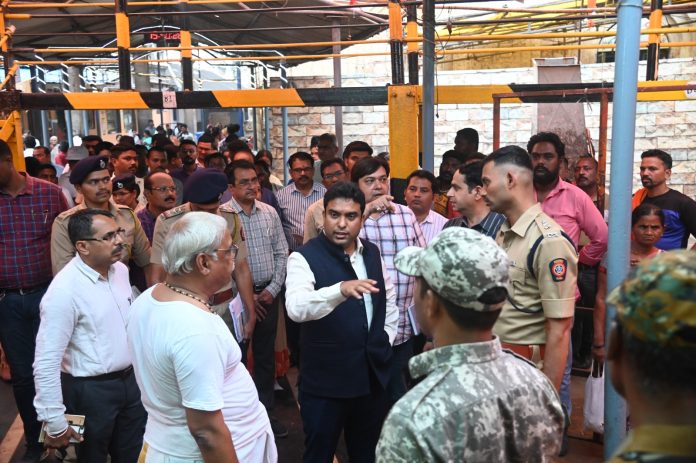 चंद्रपूर, दि. 10 : चंद्रपूर जिल्ह्याची आराध्य दैवत म्हणून ओळख असलेल्या माता महाकाली यात्रेला 14 एप्रिलपासून सुरवात होणार आहे. यासंदर्भात करण्यात आलेाल्या उपाययोजना बाबत जिल्हाधिकारी विनय गौडा जी.सी. यांनी मंदिर परिसराची पाहणी करून सूचना दिल्या. यावेळी पोलिस अधिक्षक मुम्मका सुदर्शन, मनपा आयुक्त विपीन पालीवाल, उपविभागीय अधिकारी संजय पवार, तहसीलदार विजय पवार, मनपा उपायुक्त चंदन पाटील, वाहतूक निरीक्षक प्रवीणकुमार पाटील, परिवहन महामंडळाच्या विभागीय नियंत्रक स्मीता सुतावणे, मंदिराचे विश्वस्त सुनील महाकाळे आदी उपस्थित होते.