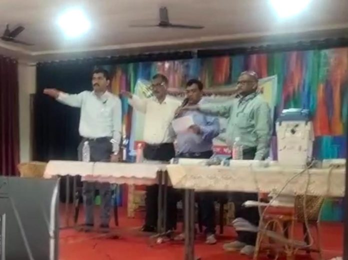 भंडारा दि. 13 : आज निवडणूक विषयक प्रशिक्षणामध्ये रॉयल पब्लिक स्कूल भंडारा येथे जिल्हाधिकारी योगेश कुंभेजकर यांच्या उपस्थितीमध्ये तसेच उपविभागीय अधिकारी गजेंद्र बालपांडे, तहसीलदार श्री. सोनवणे, शिक्षणाधिकारी तथा नोडल अधिकारी रविंद्र सलामे यांच्या उपस्थितीमध्ये तसेच या क्षेत्रातील मतदारांना ट्रेनिंग देण्याकरिता प्रशिक्षण देण्याकरिता उपस्थित असलेले जवळपास पंधराशे 1500 मतदाराच्या उपस्थितीत आज मतदानाची शपथ घेण्यात आली त्या शपथ प्रसंगी नोडल अधिकारी, सहाय्यक नोडल अधिकारी अरुण मरगडे तसेच सुनील सावरकर उपस्थित होते. स्वीप कार्यालयातील कर्मचारी या कार्यक्रमास उपस्थित होते.