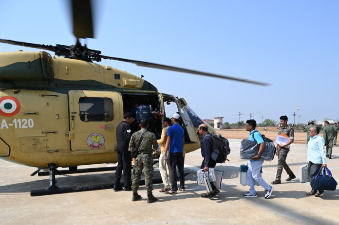 जिल्ह्यातील दुर्गम भागात मावोवादाचा धोका पाहता 16 एप्रिलपासूनच निवडणूक पथके बेसकॅम्पवर पाठविण्यात येत आहेत. याअंतर्गत काल अहेरी येथून 68 मतदान पथकांना हेलिकॉप्टरने रवाना करण्यात आले आहे.