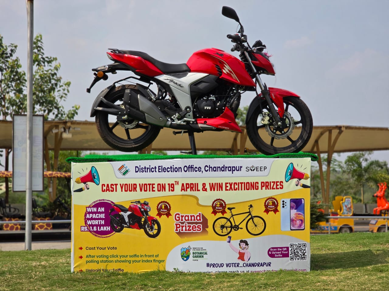 19 एप्रिल रोजी मतदान केल्यानंतर मतदारांनी शाई लावलेले बोट दाखवत मतदान केंद्रासमोर सेल्फी क्लिक करावा व आपला फोटो अपलोड करून या स्पर्धेत सहभागी व्हावे. फोटो अपलोड करण्यासाठीची लिंक / क्यूआर कोड जिल्हाधिकारी कार्यालयाच्या https://chanda.nic.in तसेच जिल्हा परिषदेच्या https://zpchandrapur.co.in/ वेबसाईटवर उपलब्ध आहे.