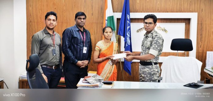 मा. अपर पोलीस अधीक्षक (प्रशासन) सा. यांचे हस्ते कुटुंबियाला १० लाख रुपयाचा धनादेश स्वाधीन.