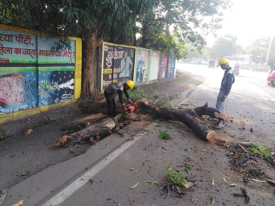 चंद्रपूर ३१ मे – चंद्रपूर महानगरपालिकेद्वारे शहरात मान्सुनपूर्व स्वच्छता अभियान राबविले जात असुन अभियानानंतर्गत १३ मोठे व संभाव्य धोकादायक झाडे तसेच १० धोकादायक झाडांच्या फांद्या आतापर्यंत तोडण्यात आल्या आहेत. धोकादायक झाडांच्या फांद्या छाटणी हा मान्सुनपूर्व कामांमधील एक महत्वाचा विषय असून सार्वजनिक ठिकाणच्या झाडांच्या फांद्यांची छाटणी करण्याचे काम पावसाळा सुरु होण्याच्या आत संपविण्याचे निर्देश आयुक्त विपीन पालीवाल यांनी दिले आहेत.