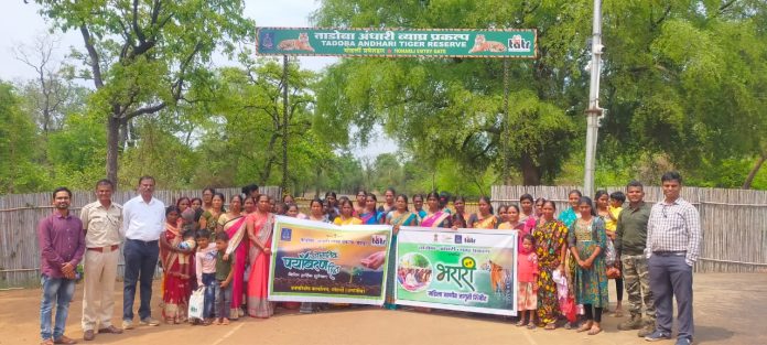 चंद्रपूर, दि. 7 : जागतिक पर्यावरण दिनाचे औचित्य साधून ताडोबा – अंधारी व्याघ्र प्रकल्पाच्या बफर क्षेत्रात असलेल्या गावातील स्वयंसहायता महिला बचत गटामार्फत वने व वन्यजीव संवर्धन संदर्भातील “भरारी” उपक्रम राबविण्यात येत आहे. या समृद्ध वनाचे संवर्धन व संरक्षण पिढ्या न पिढ्या स्थानिक समुदायाने केले आहे. यामध्ये महिलांचे विशेष योगदान आहे. वनावर स्थानिकांचा अधिकार महत्वपूर्ण आहे. म्हणून भरारी सोबतच वनातील आनंदाचा एक दिवस हा आनंददायी कार्यक्रम राबविण्यात येत आहे.