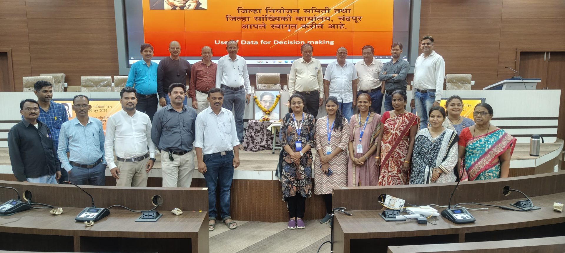 चंद्रपूर, दि. 1 : राष्ट्रीय सांख्यिकी दिनानिमित्त जिल्हा नियोजन समिती, जिल्हा मानव विकास समिती व जिल्हा सांख्यिकी कार्यालय चंद्रपूर यांच्या संयुक्त विद्यमानाने नियोजन भवन येथे सांख्यिकी दिन साजरा करण्यात आला.