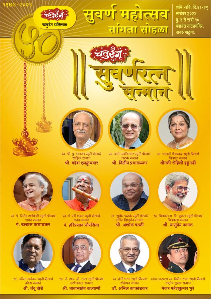चतुरंगाच्या पन्नाशी निमित्त ११ ‘चतुरंग सुवर्णरत्न सन्मानां’ची घोषणा! / दिनांक २८ – २९ सप्टेंबरला मुंबईत  भव्योदात्त सोहळा!!