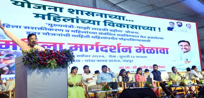 मुख्यमंत्री माझी लाडकी बहीण योजनेच्या कार्यक्रमातून स्त्री शक्तीचे दर्शन झाले, असे सांगून पालकमंत्री सुधीर मुनगंटीवार म्हणाले, महाराष्ट्राचे वर्णन ‘चांदा ते बांदा’ असे केले जाते. त्यामुळे चांदा हा राज्यात प्रथमच असला पाहिजे. आपल्या जिल्ह्यात क्षमतेची कुठेही कमतरता नाही, फक्त महिलांना योग्य व्यासपीठ मिळणे आवश्यक आहे. संधी मिळाली की त्याचं सोनं करण्याची क्षमता महिलांमध्ये आहे. महिला बचत गटांना 292 कोटींचे कर्जवाटप करण्यात आले असून यात चंद्रपूर जिल्हा राज्यात प्रथम क्रमांकावर आहे.