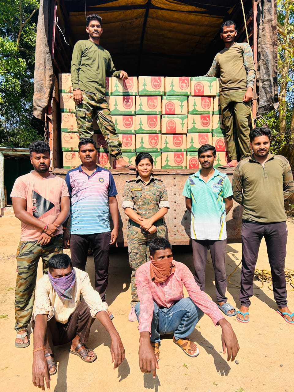 गडचिरोली जिल्हयात दारुबंदी असुन, आगामी विधानसभा निवडणूक २०२४ च्या अनुषंगाने अवैधरीत्या छुप्या रीतीने दारु विक्री व वाहतुक मोठ्या प्रमाणात होण्याची शक्यता असल्याने त्याविरुध्द पोलीस अधीक्षक श्री. नीलोत्पल यांचे अवैध दारु विक्री करणाऱ्यावर अंकुश लावण्याबाबत मिळालेल्या आदेशाच्या अनुषंगाने दिनांक २८/०९/२०२४ रोजी ट्रक वाहन क्र. एम एच १२ एफ. झेड. ८९३१ ने काही इसम अहेरी ते सिरोंचा रोडने अवैध दारुची वाहतुक करणार आहे अशी गोपनिय माहिती मिळाली. सदर मिळालेल्या गोपनिय माहितीच्या आधारावर उपविभागीय पोलीस अधिकारी जिमलगट्टा श्री. शशिकांत दसूरकर यांच्या मार्गदर्शनाखाली प्रभारी अधिकारी उप-पोस्टे रेपनपल्ली पोउपनि. संतोष काजळे यांच्या नेतृत्वात एक पथक तयार करुन सदर ठिकाणी रवाना करण्यात आले. सदर पथकातील पोलीस अधिकारी व अंमलदार हे आलापल्ली ते सिरोंचा रोडवर कमलापुर टि-पाईंट जवळ सापळा रचुन बसले असतांना, सकाळी ०६:०० वा. चे दरम्यान एक संशयीत ट्रक वाहन हे भरधाव वेगाने येतांना दिसले. त्यावेळी पोलीसांनी वाहन थांबवून वाहनामध्ये असलेल्या इसमांचे नावे विचारले असता, त्यांनी आपले नाव संजय महिपत सावंत, वय ५१ वर्षे, रा. मुंढे, ता. कराड, जि. सातारा व त्यासोबतच दुसरा इसम नामे सुनिल प्रकाश पवार, वय-३२ वर्षे, रा. जैसिंगपुर, ता. शिरोड, जि. कोल्हापुर असे सांगितले.