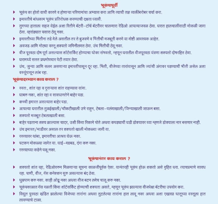 अशा प्रकारचे धक्के पुन्हा जाणवल्यास नागरिकांनी दक्षता घ्यावी व घाबरून न जाता इमारती बाहेर मोकळ्या जागेत सुरक्षित स्थळी आश्रय घ्यावा, असे आवाहन जिल्हाधिकारी संजय दैने यांनी केले आहे.