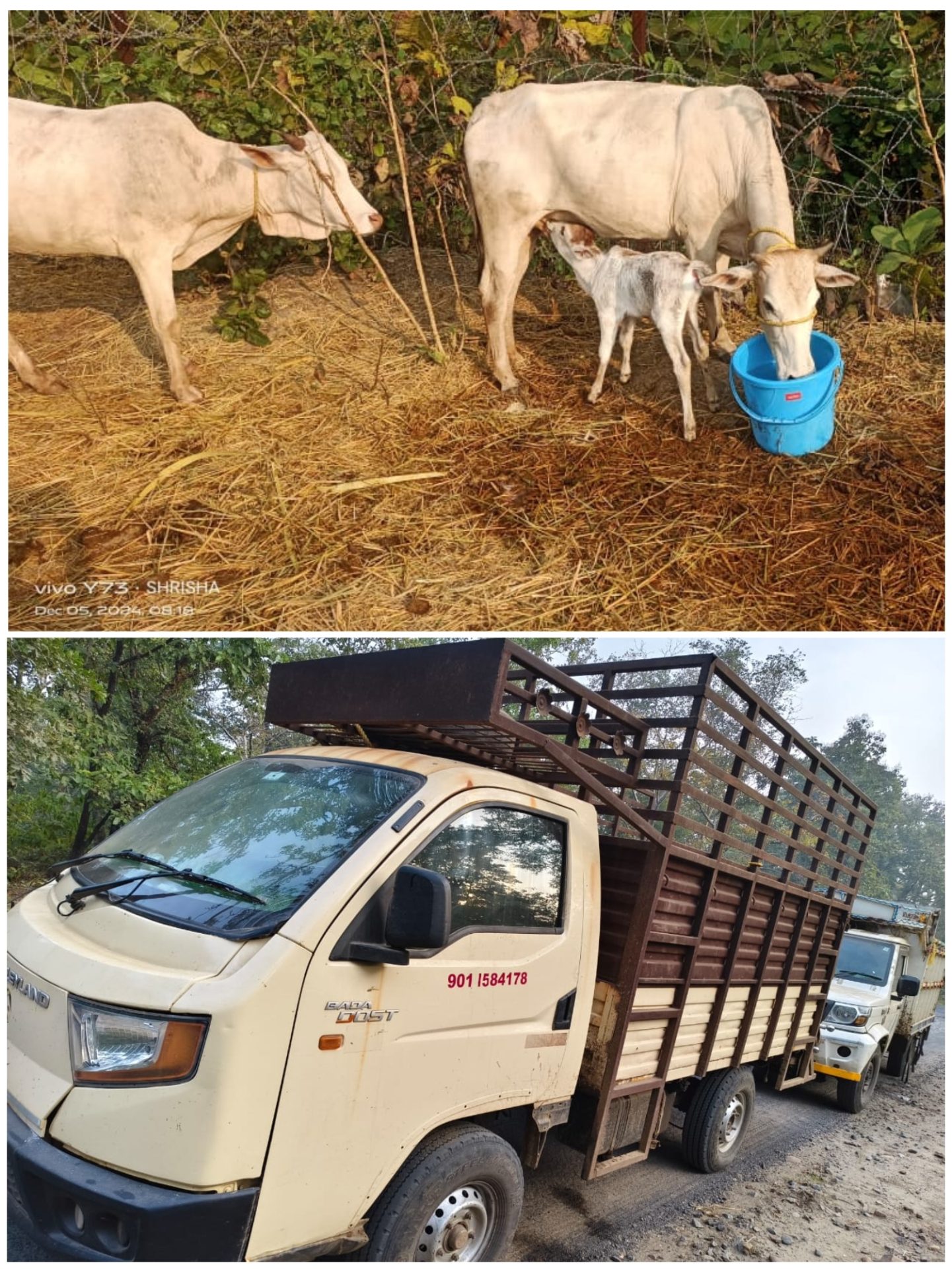घटनास्थळावर दोन्ही वाहनांची तपासणी केली असता वाहन क्रमांक टी. एस. २० टी. ९२२३ व दुसरे वाहन क्रमांक टी. एस. ०२ यु. डी. ६८८१ या वाहनांमध्ये गोवंश जनावरे अतिशय निर्दयतेने एकमेकांवर कोंबून बांधलेले असल्याचे निदर्शनास आले होते. या दोन्ही वाहनांत एकुण २३ गोवंश जनावरे एक पाय आणि मान दोरीने निर्दयतेने बांधुन ठेवलेल्या