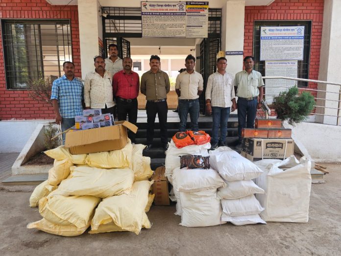 चंद्रपुर जिल्हयातील सुगंधीत तंबाकु मानोरा येथील गोडाउन मधून लाखोंचा सुगंधीत तंबाकु जप्त