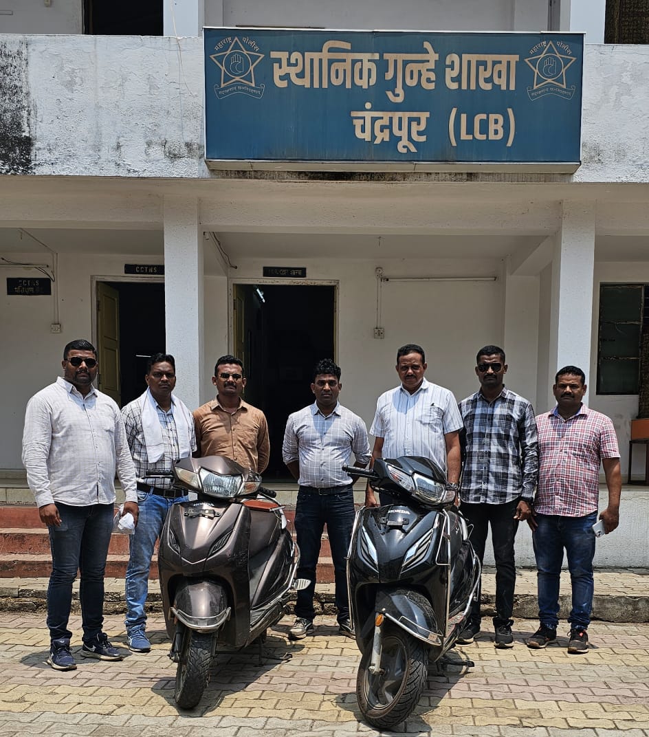 दिनांक १८/०५/२०२५ रोजी रेल्वे स्टेशन चौक चंद्रपूर येथे बिना नंबर प्लेटची मोटार सायकल विक्री करीता ग्राहकाचे शोधात फिरत असल्याचे गोपनिय माहिती वरुन सदर ठिकाणी सापळा रचुन एक विधी संघर्ष बालकास ताब्यात घेवुन कौशल्यपुर्ण तपास करुन बारकाईने विचारपुस केली असता त्याचे कडुन वेगवेगळया ठिकाणाहुन चोरलेल्या एकुण २ मोपेड दुचाकी वाहन होंडा अॅक्टीवा क्रमांक MH34-CP-1191 आणि MH49-AU-8109 अशी दोन वाहने जप्त करण्यात आले आहे. सदर वि.सं. बालकाविरुध्द नागपूर शहर येथे चोरीचे अनेक गुन्हे दाखल आहेत.