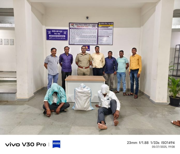 दिनांक २६ मे, २०२५ रोजी पोलीस स्टेशन राजुरा हद्दीत मिळालेल्या गोपनिय माहितीचे आधारे इसम नामे वसंत शंकर पुणेकर रा. भुरकुंडा याचे राहते घराची पंचासमक्ष झडती घेतली असता त्याचे घरात एका प्लॉस्टीक चुंगडी मध्ये ४० किलो बीटी बियाणे (HTBT) किंमत ७६,८००/- रुपयाचा माल अवैध रित्या बाळगल्याचे मिळुन आल्याने त्याचे कडे विचारपुस केली असता सदर माल नामे गटन्ना राजन्ना पाकावार रा. सुकडपल्ली ता. राजुरा याचे असल्याचे सांगितल्याने सदर माल आणि दोन्ही इसमांना ताब्यात घेवुन सदर बियाणांची पडताळणी व कारवाई करणेसाठी कृषी विभागाला माहिती देण्यात आली असता कृषी विभागाचे अहवालावरुन प्रतिबंधित कापूस (HTBT) बियाणे साठवणूक व जवळ बाळगणे आधि शासनाची तसेच विक्री उद्देशाने शेतकऱ्यांची फसवणूक करण्याकरीता आरोपीतांनी हे बियाणे बाळगले अश्या कृषी अधिकारी श्री नरेश रामकृष्ण ताजने यांचे अहवालावरुन दोन्ही आरोपीविरुध्द पोलीस स्टेशन राजुरा येथे विविध कलमान्वये गुन्हा नोंदविण्यात आला आहे. पुढील तपास राजुरा पोलीस करीत आहे.