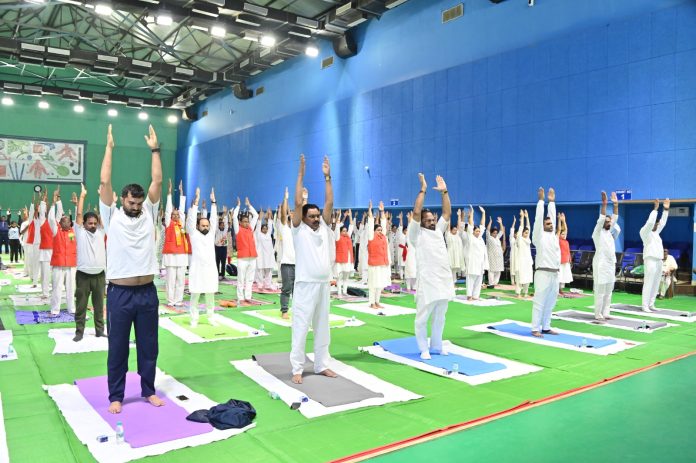 जिल्हा प्रशासन, जिल्हा क्रीडा अधिकारी कार्यालय, मेरा युवा भारत आणि शिक्षण विभाग यांच्या संयुक्त विद्यमाने जिल्हा क्रीडा संकूल येथे आयोजित मुख्य शासकीय योग दिनाच्या कार्यक्रमात ते बोलत होते. यावेळी आमदार किशोर जोरगेवार, मुख्य कार्यकारी अधिकारी पुलकित सिंह, अतिरिक्त जिल्हाधिकारी नितीन व्यवहारे, उपविभागीय अधिकारी संजय पवार, तहसीलदार विजय पवार, जिल्हा क्रीडा अधिकारी अविनाश पुंड, प्रकल्प अधिकारी विकास राचेलवार, शिक्षणाधिकारी राजेश पाताळे, अश्विनी सोनवणे, उपमुख्य कार्यकारी अधिकारी मिना साळूंके, सुभाष कासनगोट्टूवार आदी उपस्थित होते.