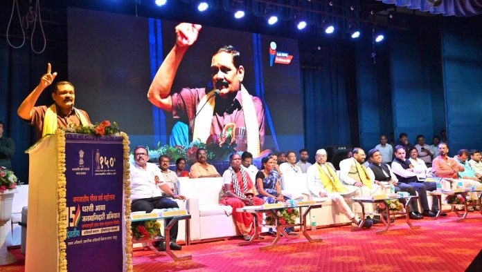 एकात्मिक आदिवासी विकास प्रकल्प, चंद्रपूरद्वारे प्रियदर्शिनी सभागृह येथे धरती आबा जनभागीदारी अभियानाचा शुभारंभ करताना ते बोलत होते. यावेळी मंचावर खासदार डॉ. नामदेव किरसान, आमदार किशोर जोरगेवार, जिल्हाधिकारी विनय गौडा जी.सी. महापालिका आयुक्त विपीन पालीवाल, अतिरिक्त मुख्य कार्यकारी अधिकारी गिरीश धायगुडे, प्रकल्प अधिकारी विकास राचेलवार, श्री. लाटकर आदी उपस्थित होते.