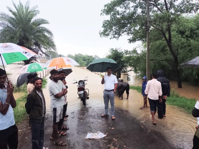 चंद्रपूर, दि. 09 जुलै : ब्रम्हपुरी तालुक्यात सलग दोन दिवस झालेल्या मुसळधार पावसामुळे अनेक भागांत पूरपरिस्थिती निर्माण झाली आहे. सोमवार, दिनांक 07 जुलै 2025 रोजी 108 मिमी तर 08 जुलै रोजी 162 मिमी पावसाची नोंद झालेली आहे. त्यामुळे तालुक्यातील काही मुख्य रस्ते व महामार्ग पाण्याखाली गेले आहेत.