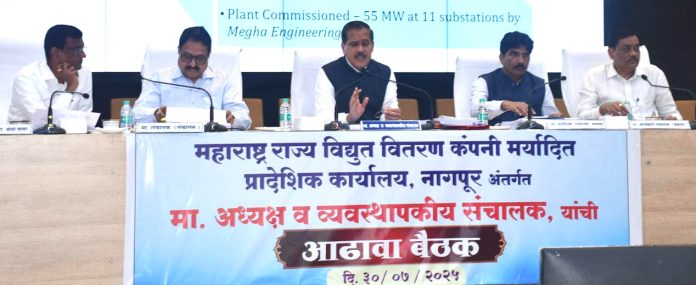 दि. ३० जुलै २०२५ : सुधारित वितरण क्षेत्र योजनेतून (आरडीएसएस) विदर्भामध्ये १००७ वीजवाहिन्यांच्या विलगीकरणाचे व इतर तांत्रिक कामांसह मुख्यमंत्री सौर कृषिवाहिनी योजना २.० मधून ७२७ उपकेंद्रांच्या सक्षमीकरण व क्षमतावाढीचे कामे पूर्णत्वाकडे आहेत. त्यामुळे नवीन वीजजोडणीसह सर्व ग्राहकांना सुरळीत व दर्जेदार वीजपुरवठा देण्यास प्राधान्य द्यावे. तसेच वीजहानी कमी करून वीजबिलांच्या वसूलीला आणखी वेग द्यावा. यात कोणतीही हयगय करू नये असे निर्देश महावितरणचे अध्यक्ष व व्यवस्थापकीय संचालक श्री. लोकेश चंद्र यांनी बुधवारी (दि. ३०) नागपूर प्रादेशिक विभागाच्या आढावा बैठकीत दिले.