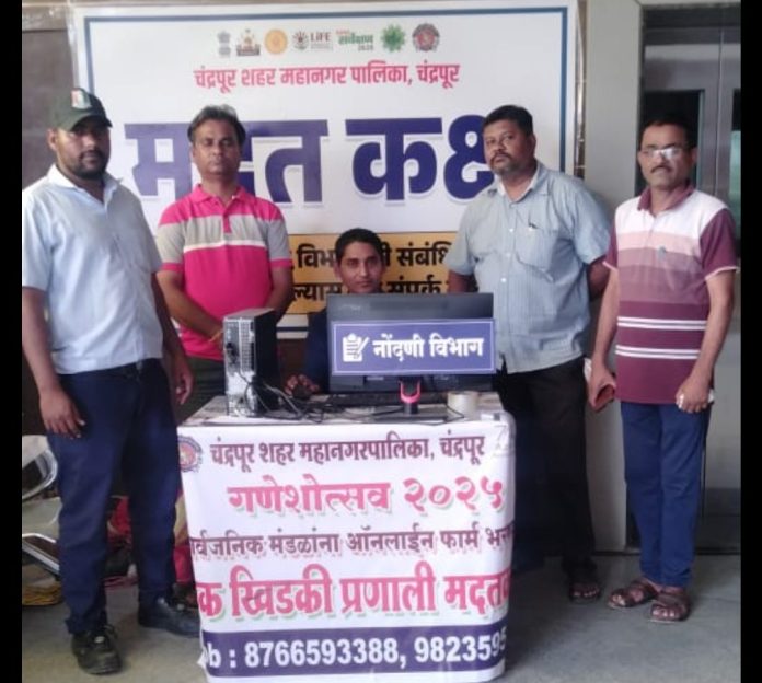 येत्या 27 ऑगस्टपासुन शहरात दहा दिवस गणेशोत्सव साजरा होणार आहे. गणेश मंडळांना महापालिका व इतर विभागाकडून रीतसर परवानग्या या घ्याव्या लागतात. पोलीस स्टेशन, ट्राफिक पोलीस स्टेशन,सार्वजनिक बांधकाम, अग्निशमन, महावितरण केंद्र, महानगरपालिका इत्यादी विभागाच्या परवानगी या एकच ठिकाणाहुन घेता याव्या यासाठी एक खिडकी प्रणाली चंद्रपूर महानगरपालिकेतर्फे सुरु करण्यात आली आहे.