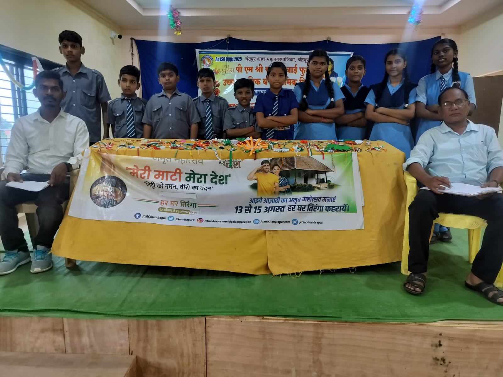 चंद्रपूर 11 ऑगस्ट – “आजादी का अमृत महोत्सव” निमित्त भारत सरकारतर्फे राबविण्यात येणाऱ्या “हर घर तिरंगा” अभियानाला उत्स्फूर्त प्रतिसाद मिळत असून, त्याचाच एक भाग म्हणून चंद्रपूर महानगरपालिका शिक्षण विभागाने मनपा शाळांमध्ये विविध देशभक्तीपर स्पर्धांचे आयोजन केले. या स्पर्धांचे उद्दिष्ट विद्यार्थ्यांमध्ये राष्ट्रध्वजाविषयी अभिमान, देशभक्ती व राष्ट्रीय एकात्मतेची भावना जागृत करणे हे होते.