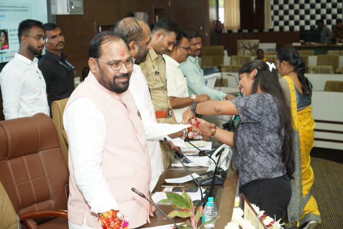 याप्रसंगी आदिवासी महिलांनी मान्यवरांना राखी बांधून योजनेचे स्वागत केले. विविध शासकीय योजनांचे लाभ प्रदान करून ‘राखी पौर्णिमा’ साजरी करण्यात आली.