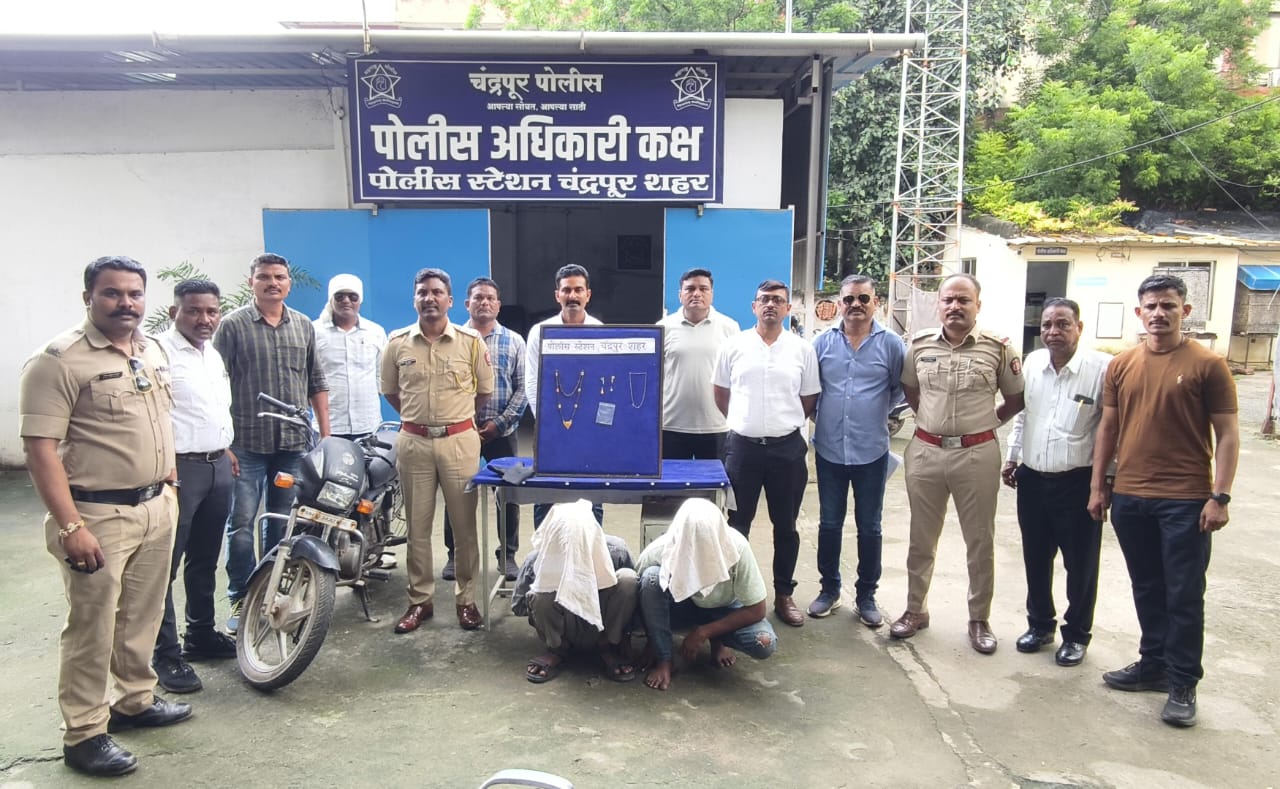 सदरचा गुन्हा नोंद होताच चंद्रपुर शहर पोलीसांनी तपासचक्रे फिरवुन, गोपनीय माहिती संकलीत करून आणि तपास कौशल्याचा वापर करून गुन्हा दाखल होताच काही कालावधीत आरोपींचा शोध घेण्यात आला. सदर आरोपीतांचा मा. विद्यमान न्यायालयातुन पोलीस कोठडी रिमांड घेवुन आरोपी १) सुमित शांताराम अम्राजवार, वय २८ वर्षे, २) तनविर कदीर बेग, वय २३ वर्षे, दोन्ही रा. भंगाराम वार्ड चंद्रपुर यांची कसुन चौकशी केली असता, आरोपीतांनी गुन्हा केल्याची कबुली दिल्याने त्यांचेकडुन गुन्हयात चोरीस गेलेला मुद्देमाल ३२.७३० मीली.ग्रॅ. एकुण किं. २०,६१,७६/- रू चा मुद्देमाल हस्तगत करण्यात आला. तसेच दिनांक १६.०८.२०२५ रोजी फिर्यादी नामे नारायण चिल्लकेवार रा. भिवापुर वार्ड चंद्रपुर यांची मोटारसायकल चोरी झाल्याबाबत त्यांनी पोस्टेला येवुन तकार दिल्याने सदर गुन्हयाबाबतसुध्दा अटक आरोपीतांची कसुन चौकशी केली असता, वरील आरोपीतांनीच मोटारसायकल क. एम.एच. ३४ ए.झेड. २०५३ किं. २०,०००/- रू. चोरी केल्याची कबुली दिल्याने सदर गुन्हयात सुध्दा त्यांना अटक करण्यात आलेली आहे. सदरचे दोन्ही गुन्हे चंद्रपुर शहर पोलीसांनी काही वेळातच उघडकीस आणलेले आहे.