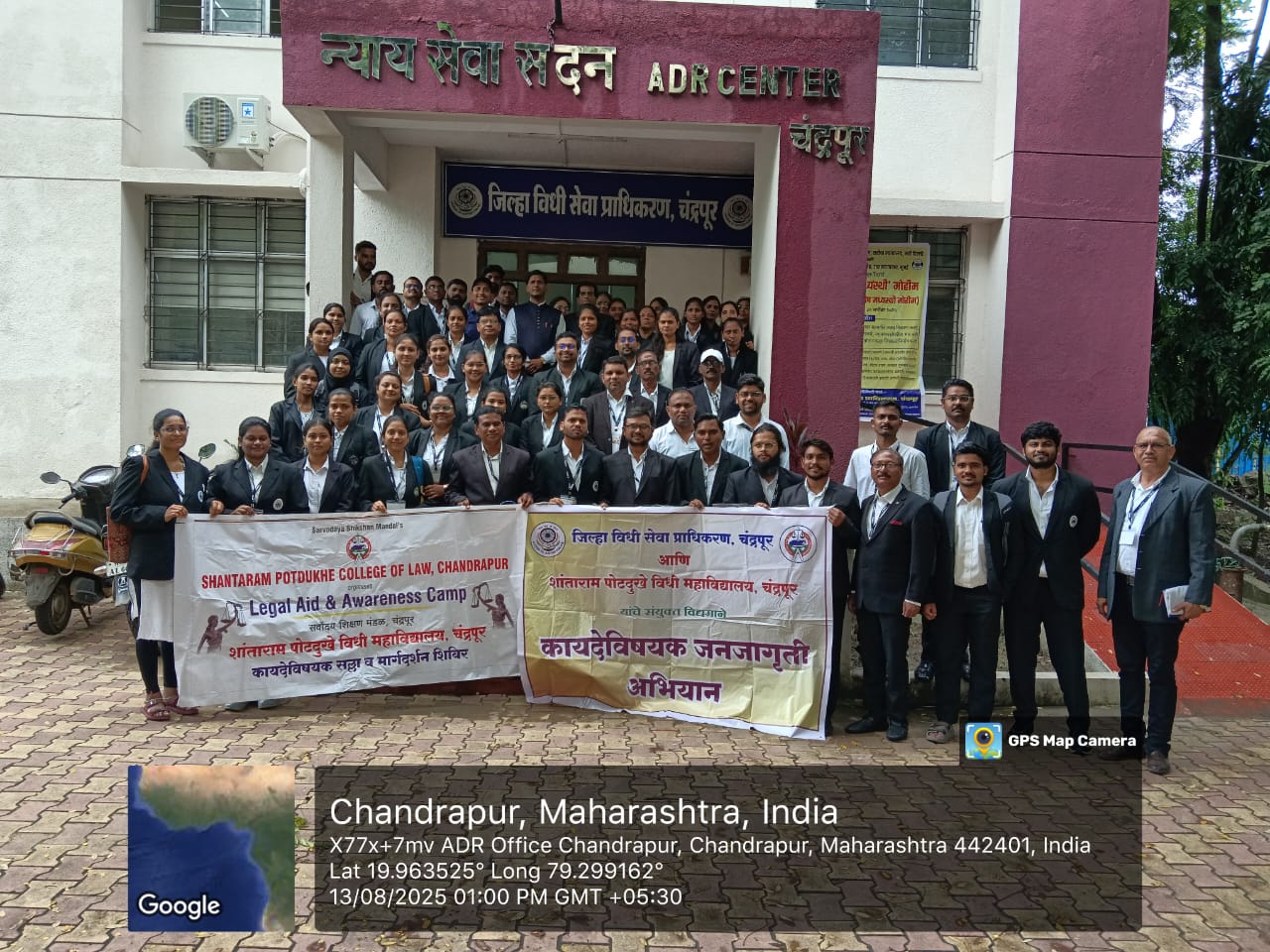 चंद्रपूर, दि. 18 : जिल्हा विधी सेवा प्राधिकरण व शांताराम पोटदुखे विधी महाविद्यालय यांच्या संयुक्त विद्यमाने प्रमुख जिल्हा व सत्र न्यायाधीश समृद्धी भीष्म यांच्या मार्गदर्शनाखाली जिल्हा विधी सेवा प्राधिकरण कार्यालयात कायदेविषयक जनजागृती कार्यक्रमाचे आयोजन करण्यात आले.