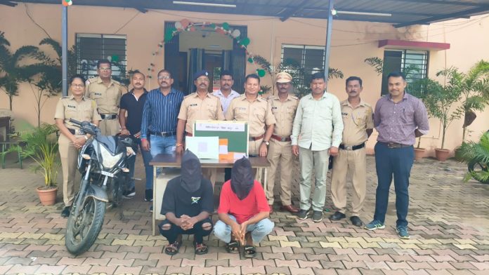 दिनांक २१ ऑगस्ट, २०२५ रोजी सायंकाळी मिळालेल्या गोपनिय माहितीवरुन जुना सोमनाथ मंदीर परिसर, मुल रेल्वे स्टेशन, मुल येथे एका मोटार सायकलवरील दोन युवकांना ताब्यात घेवुन त्यांची पंचासमक्ष झडती घेतली असता त्यांच्या ताब्यातील मोटार सायकल बजाज पल्सर क्रमांक MH34-CE-6620 च्या मागील सिटच्या खाली विक्री करण्याचे उद्देशाने अमली पदार्थ सुकलेला गांजा वनस्पती १७९ ग्रॅम किंमत ३५८०/- रु.चा अमली पदार्थ अवैध रित्या मिळुन आल्याने आरोपी (१) रोहीत वय २० वर्ष, (२) आदित्य वय १९ वर्ष दोन्ही मुल यांचेविरुध्द पोलीस स्टेशन मुल येथे अपराध क्रमांक ३४०/२०२५ कलम ८ (सी), २० (बी), २९ एन.डी.पी.एस. अॅक्ट अन्वये गुन्हा नोंदविण्यात आला असुन त्यांचे ताब्यात मिळुन आलेला गांजा, नगदी ५०० व मोटार सायकल असा एकुण १,०४,८०/- रुपयाचा माल जप्त करण्यात आला असुन पुढील तपास मुल पोलीस करीत आहे.